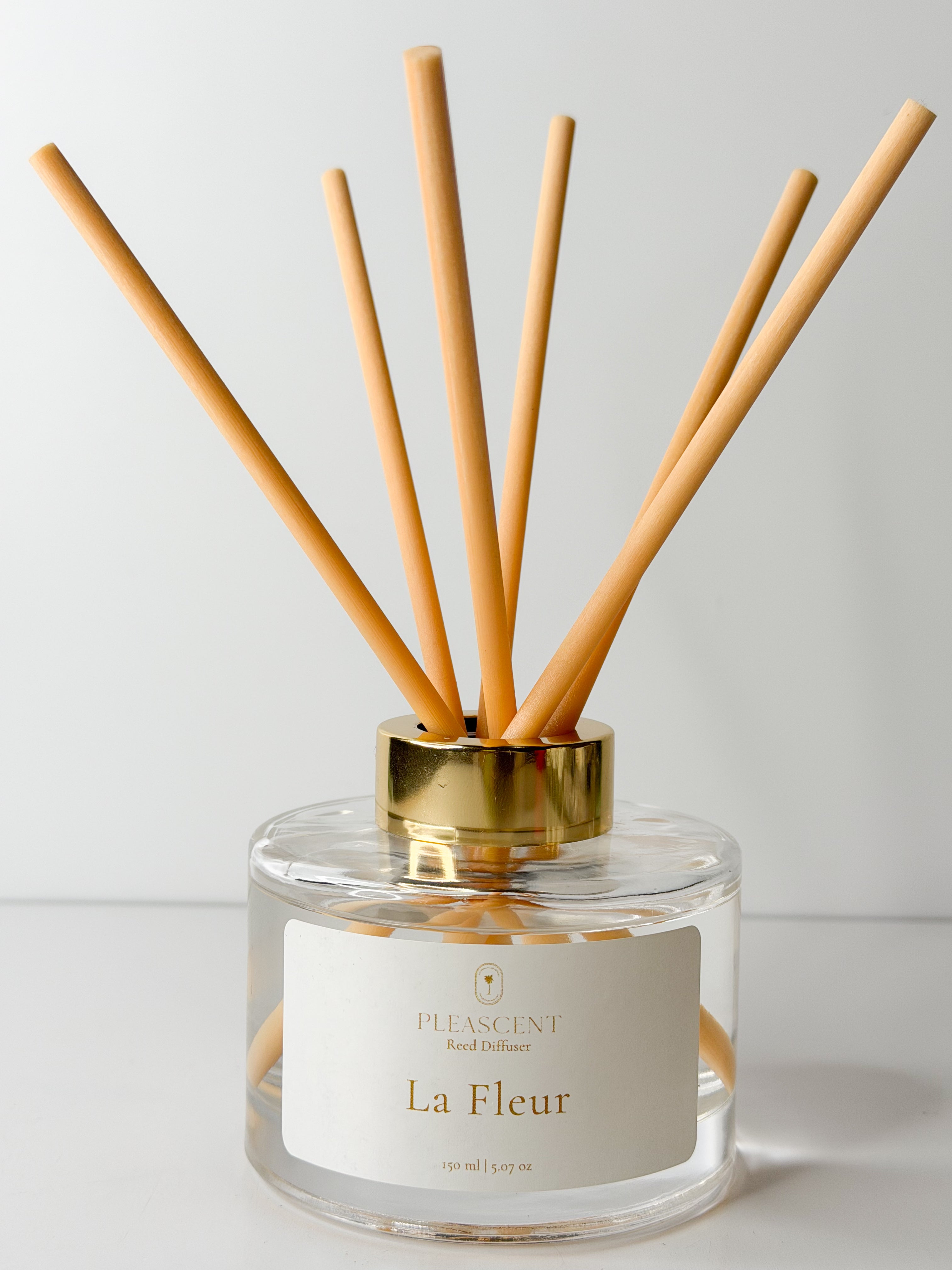 Presented in an elegant glass bottle with a polished gold top, each diffuser includes 6 reed sticks to deliver a continuous, flameless aroma that elevates your space with quiet sophistication.